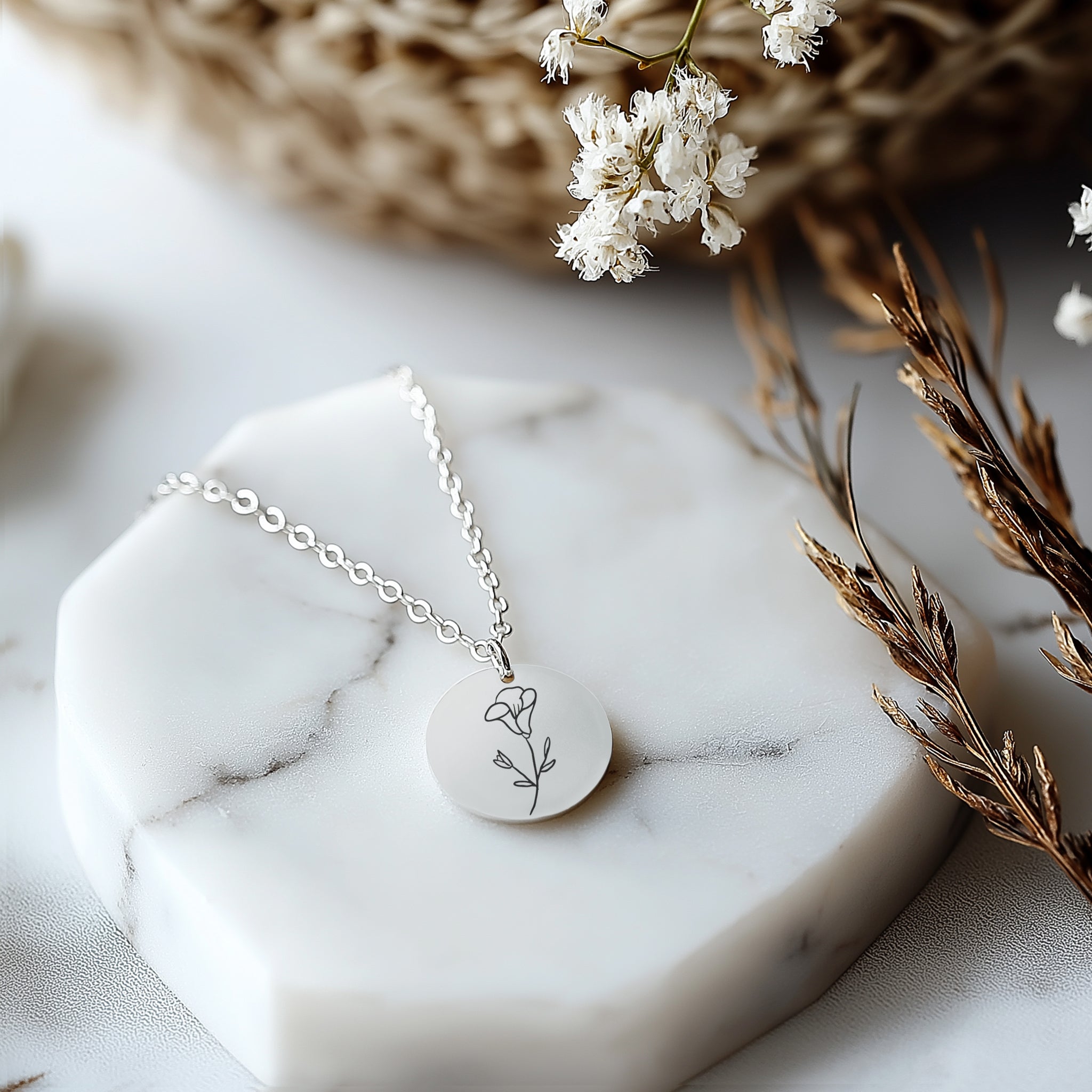 Disc size: 5/8" (16mm) Chain Length: Our chains have extenders making the necklace wearable from 16" to 20" Metal: Choose between sterling silver, gold or rose gold