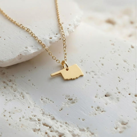 Oklahoma where the wind comes sweeping down the plains... Oklahoma is best known for its vast and open fields, heavy winds, agriculture, being the filming location of Netflix' popular Docu-Series Tiger King! If you or someone you love comes from Oklahoma, then this beautiful laser cut Oklahoma necklace is the perfect everyday accessory for your or a gift for your...