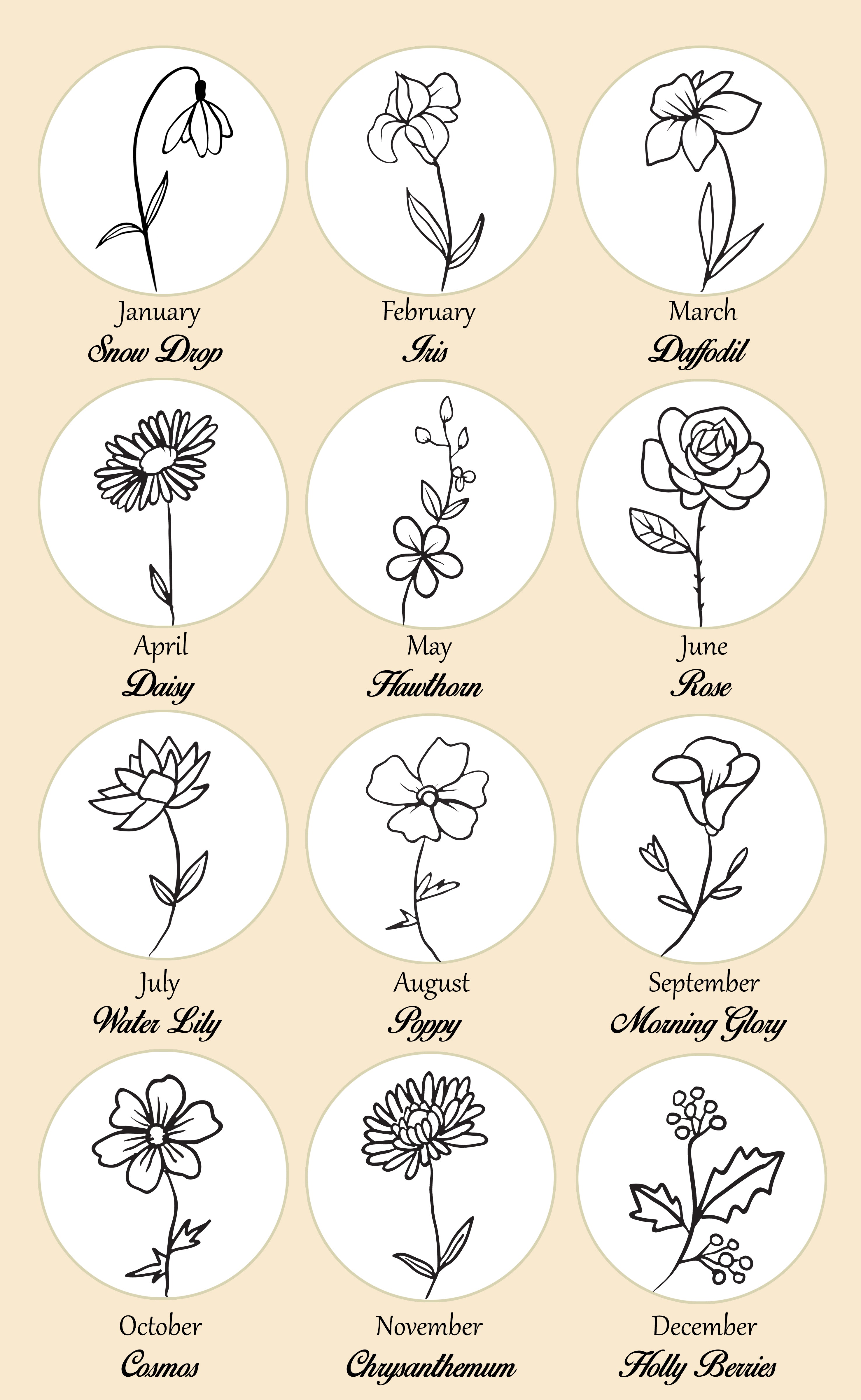 We can have any initial engraved on the smaller disc, and the birth flower of your choice on the larger disc. Please leave both the month for the birth flower and the initial for the smaller disc in your order notes at checkout!