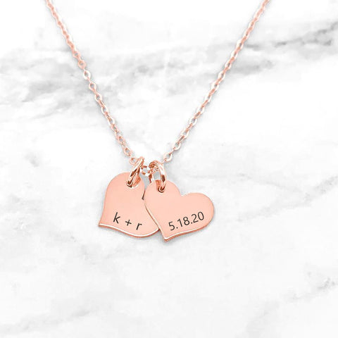 A dainty heart necklace with any name, date, etc. precision laser engraved. Please keep in mind that these heart charms are very dainty and fit up to 7 characters most comfortably. You can choose to have a 16", 18" or 20" chain.    --------------------NECKLACE DETAILS-------------------- Metal: Sterling Silver, gold or rose goldChain: 16", 18", or 20" length  Heart Size: 13...
