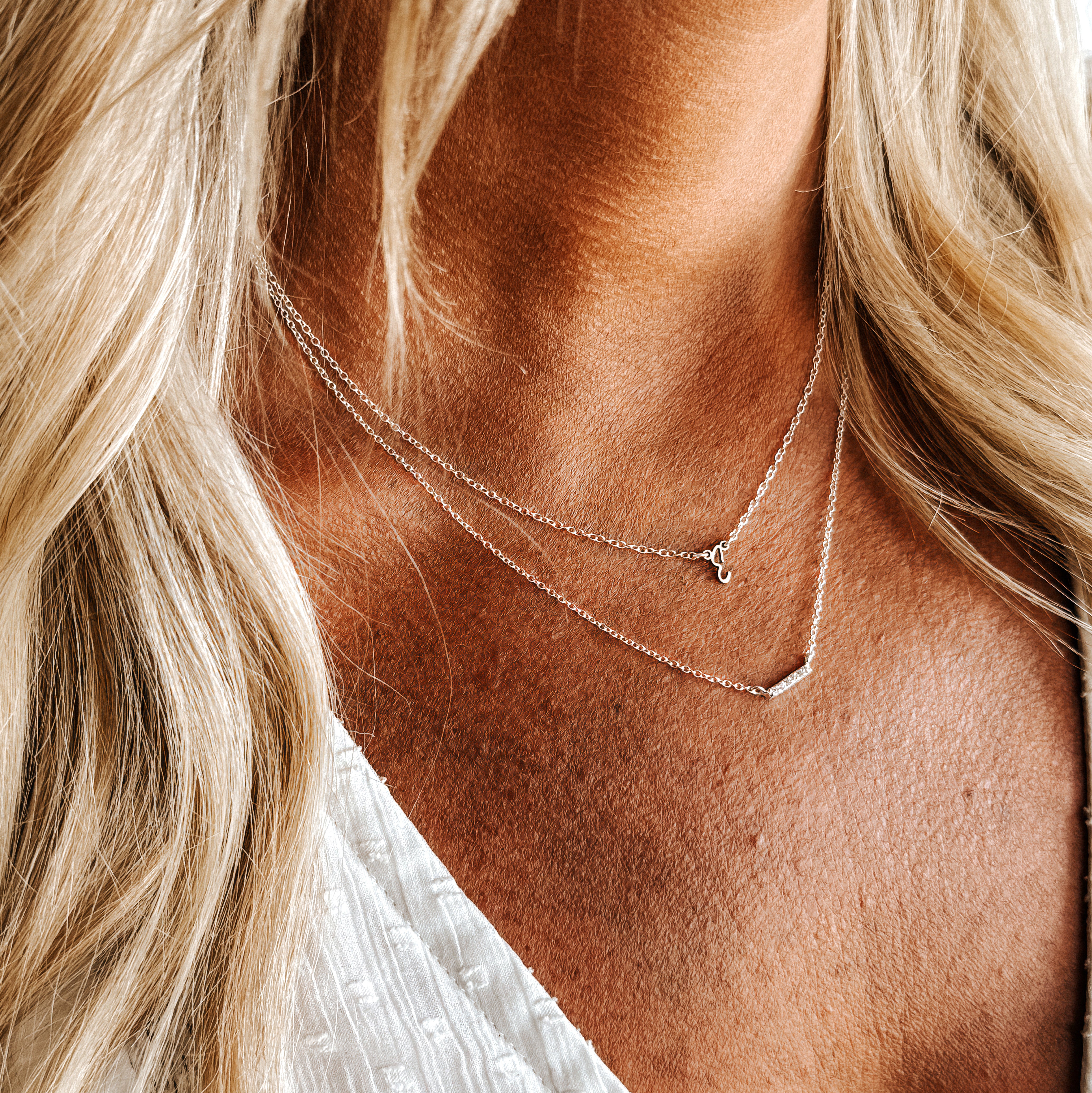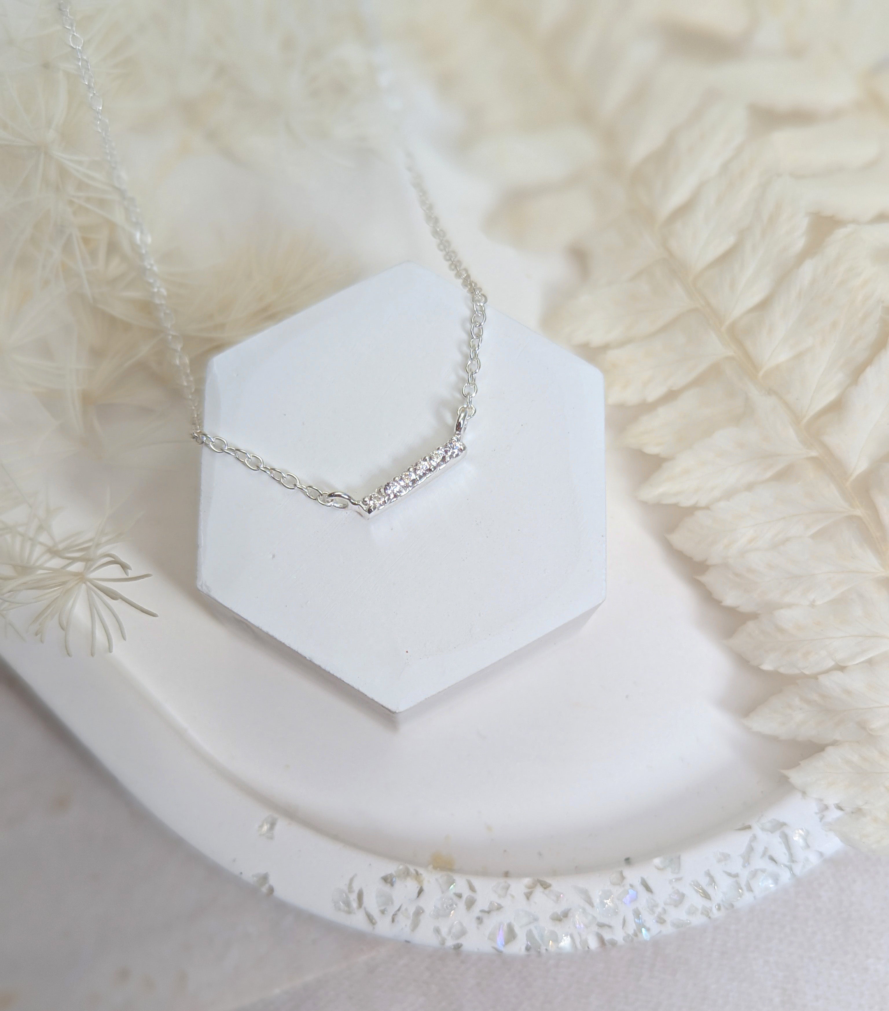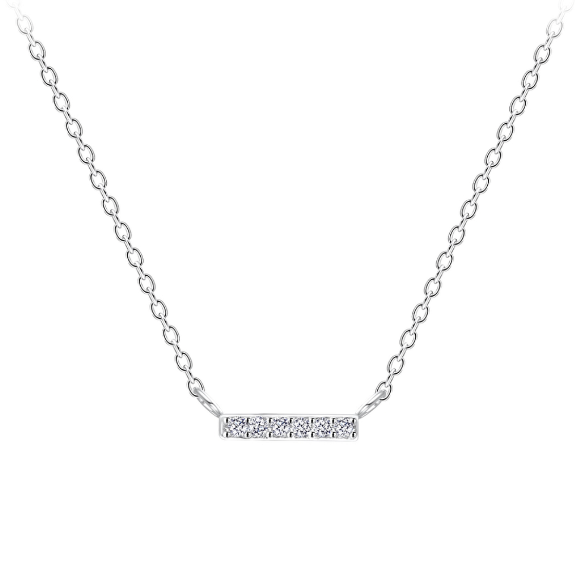 This dainty CZ bar necklace adds an effortless touch of sparkly elegance to any look! ♥ This beautiful sterling silver diamond bar necklace will be your new favorite go-to piece to add to any look! Whether dressing it up for a night out, or wearing it out for coffee, this is the perfect necklace for everyday wear and every occasion. This dainty bar necklace also makes the perfect layering necklace to pair with all your other favorite pieces! The tiny 1.5x10 mm CZ studded bar hangs on a delicate 17" sterling silver chain.